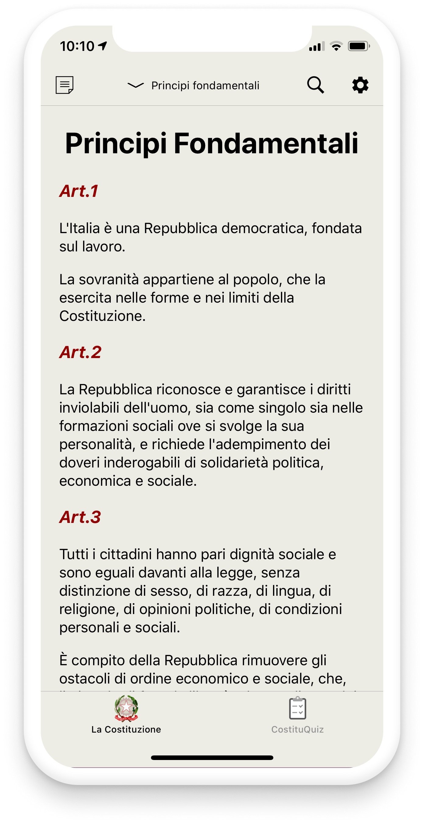 Costituzione Italiana ti permette di leggere il testo in mobilità, con iPhone e iPad.